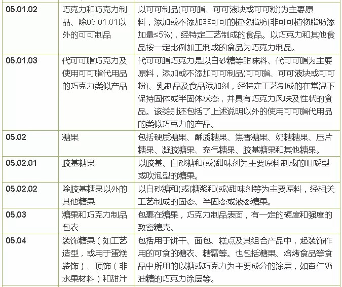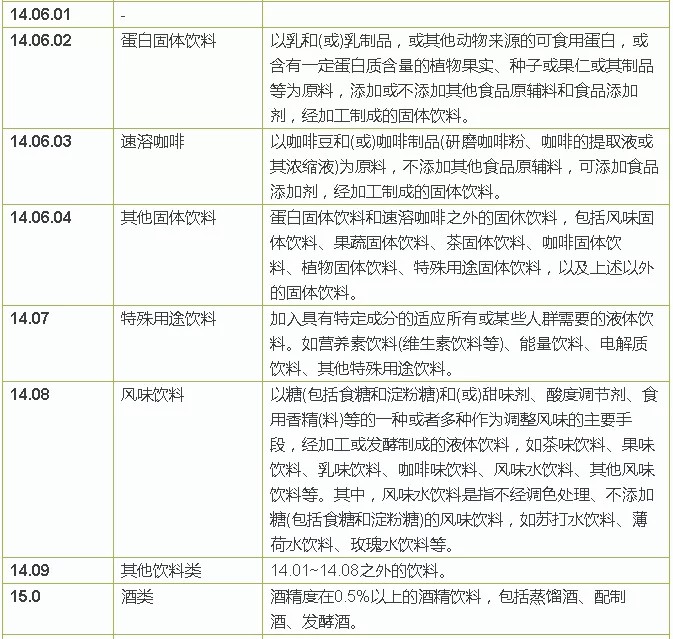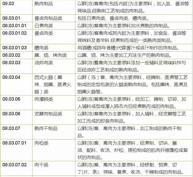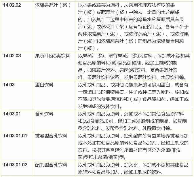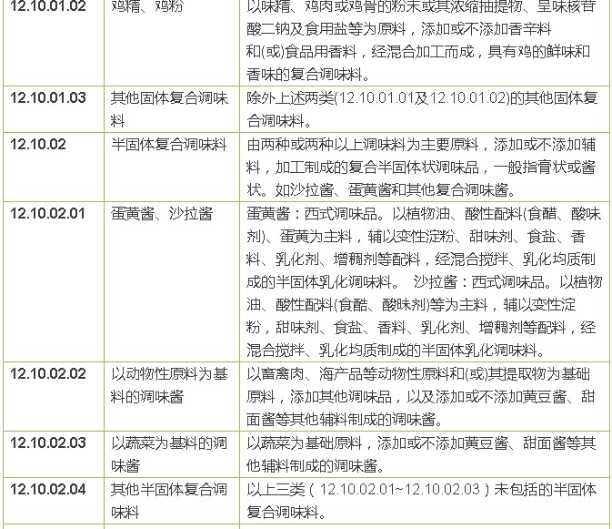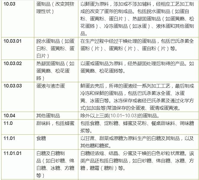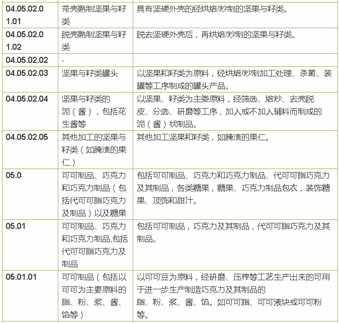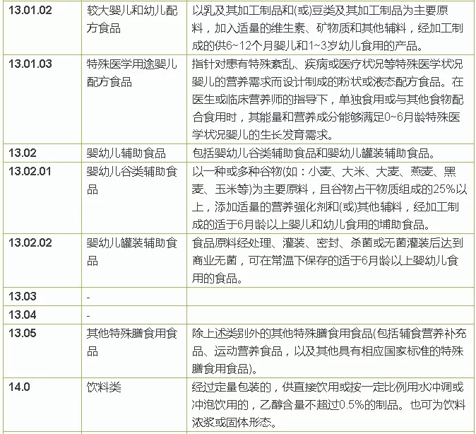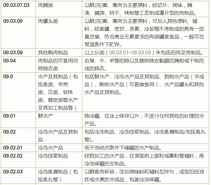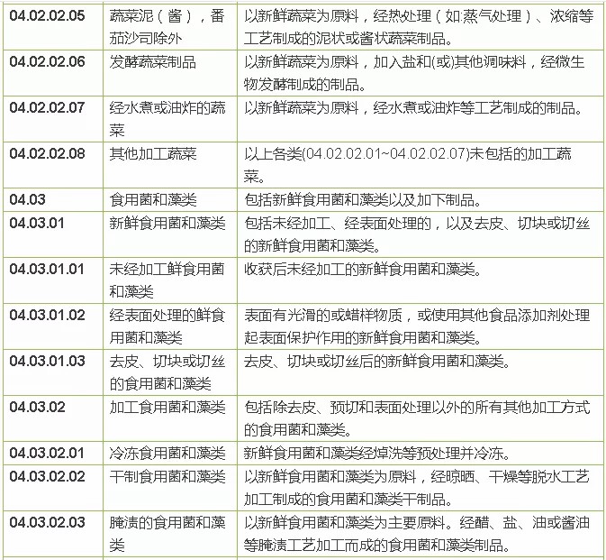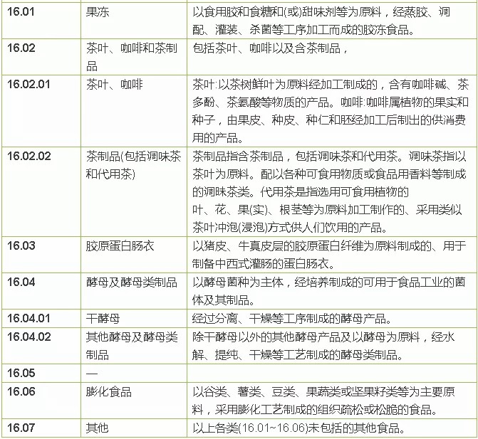 1、食品分類采用《GB 2760-2014 食品安全國家標準 食品添加劑使用標準》中的“食品分類系統(tǒng)”,包含16大類食品。 2、GB 2760-2014中的食品分類除“調味品、特殊膳食、飲料類、酒類和其它類等類別”之外,大部分是按照“食品主原料”進行分類。因此,在食品生產許可分類中的一些產品類別需要根據食品的主要原料在“2760食品分類系統(tǒng)”中查找。舉例如下: (1)“餅干”、“糕點”等在“焙烤食品”中查找。 (2)“食糖”、“蜂蜜”在“甜味料”中查找。 (3)“糖果”、“可可及焙烤咖啡”在“可可、巧克力及糖果”中查找。 (4)“罐頭類食品”、“速凍食品”等則需根據原料來查找。如“畜肉罐頭”和“禽類罐頭”在“肉及肉制品”的“熟肉制品”下;“八寶粥罐頭”則在“糧食及糧食加工品”的“雜糧制品—八寶粥罐頭”下;“蔬菜罐頭”在“水果、蔬菜及其制品”的“蔬菜—加工蔬菜—蔬菜罐頭”下;“水果罐頭”則在“水果、蔬菜及其加工制品”的“水果—加工水果—水果罐頭”下。 |