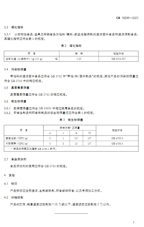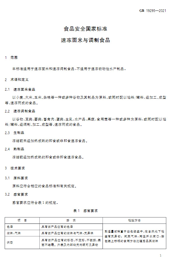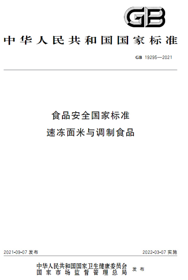 GB 19295-2021食品安全國家標準 速凍面米與調(diào)制食品